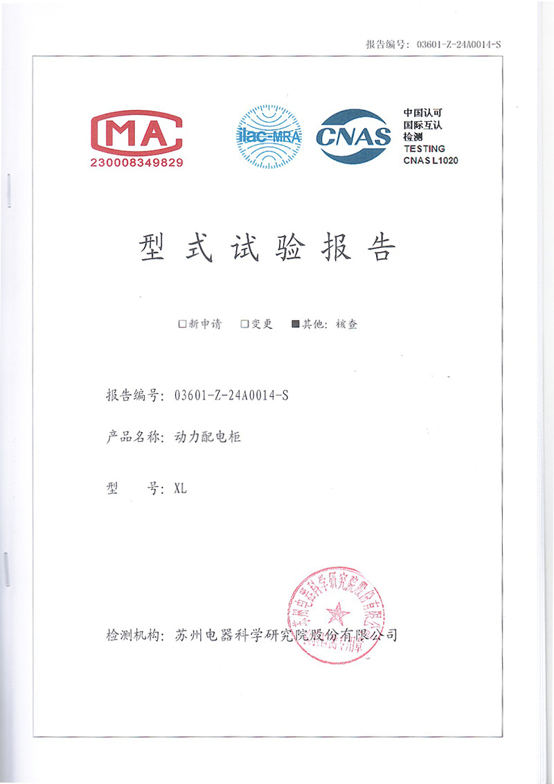 XL動(dòng)力配電柜 試驗(yàn)報(bào)告2