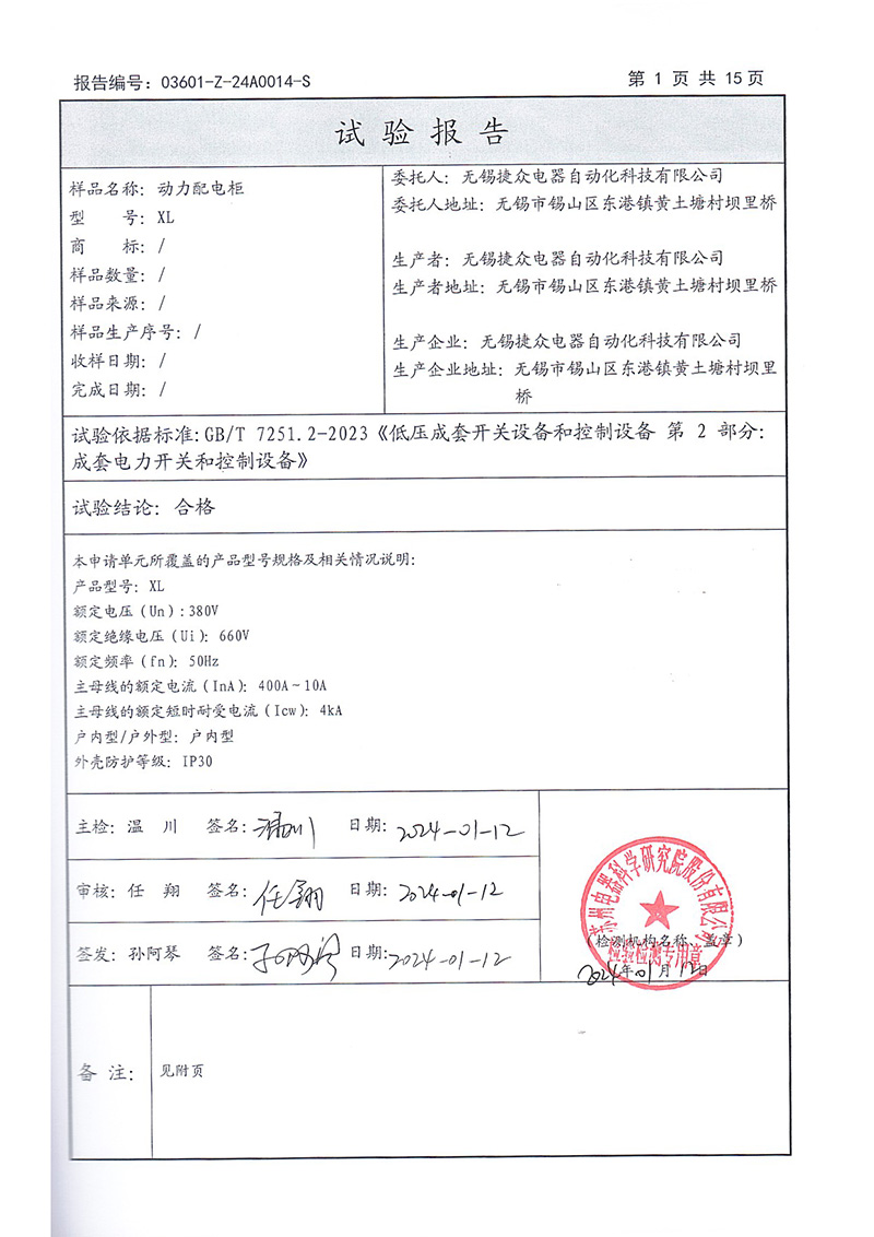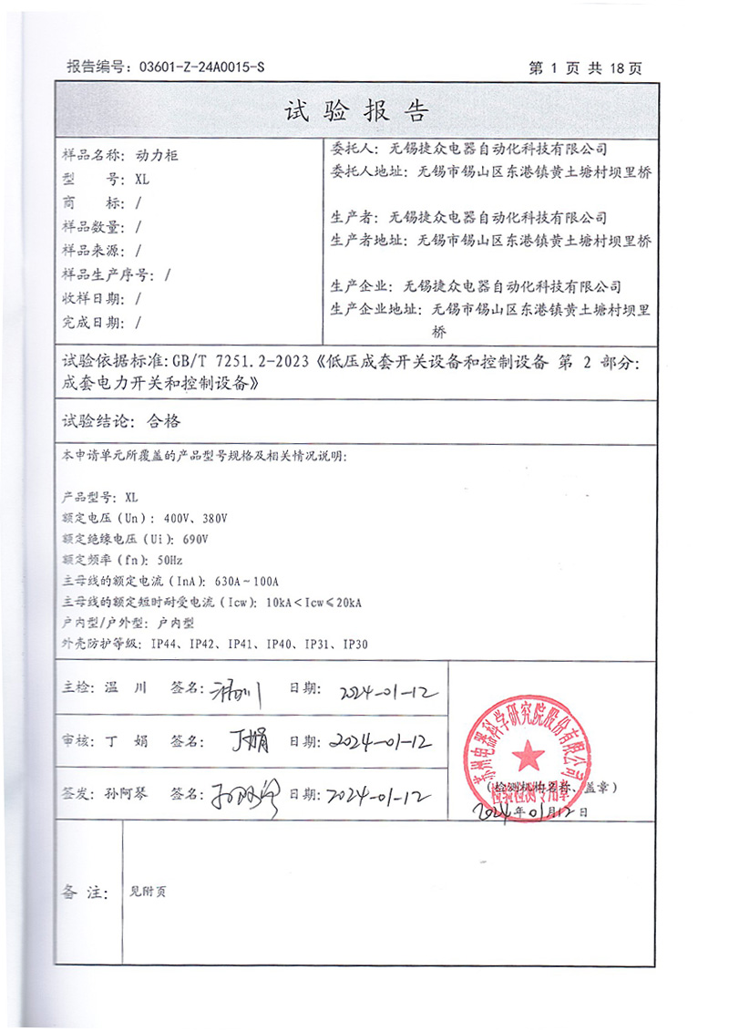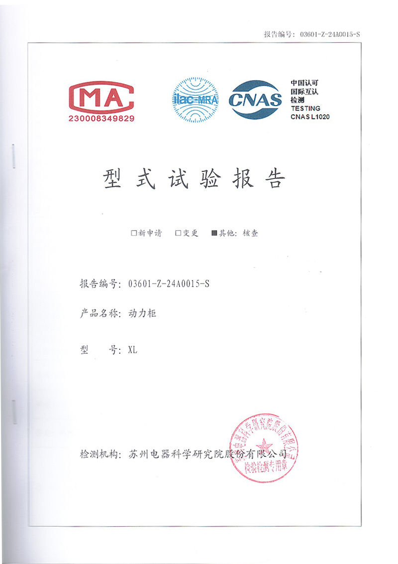 XL動(dòng)力柜 試驗(yàn)報(bào)告1