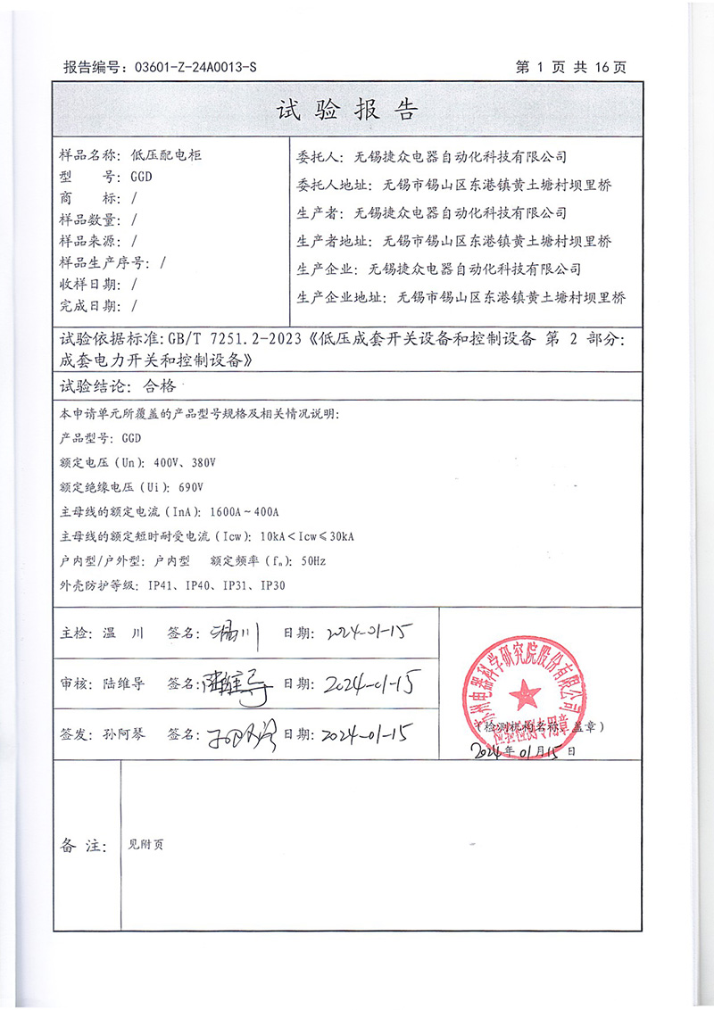 GGD低壓配電柜 試驗(yàn)報(bào)告1