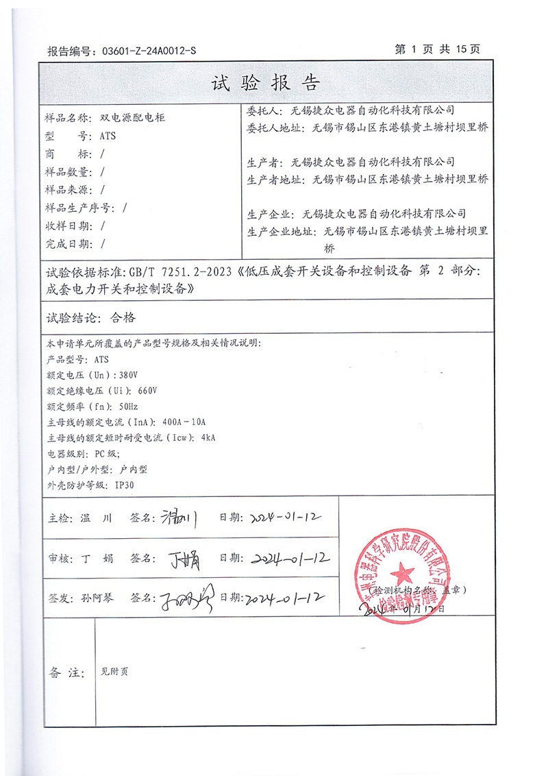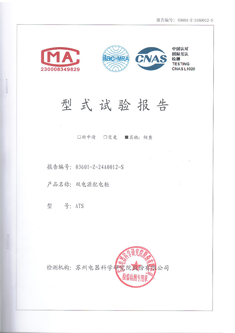 ATS雙電源配電柜 試驗(yàn)報(bào)告2